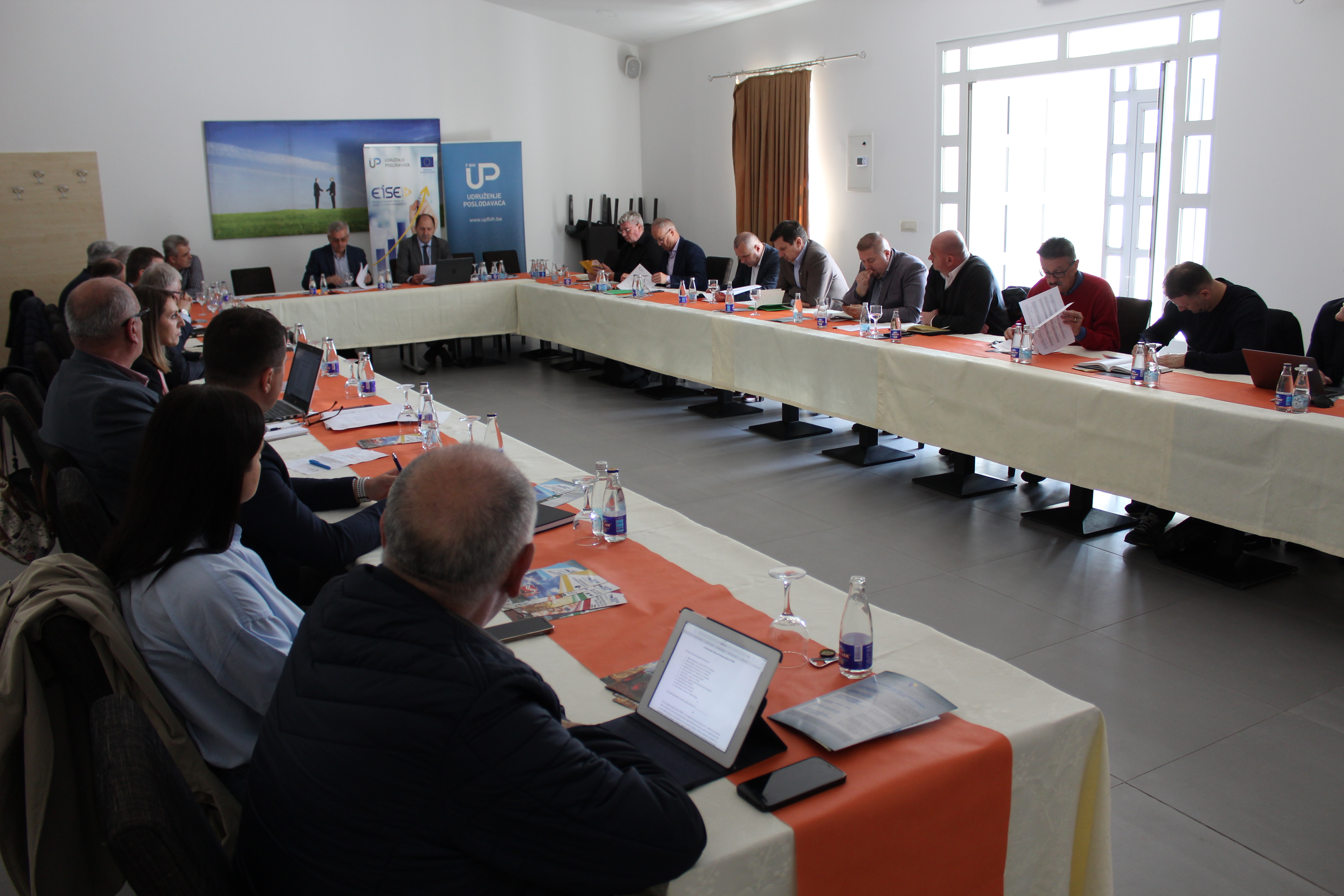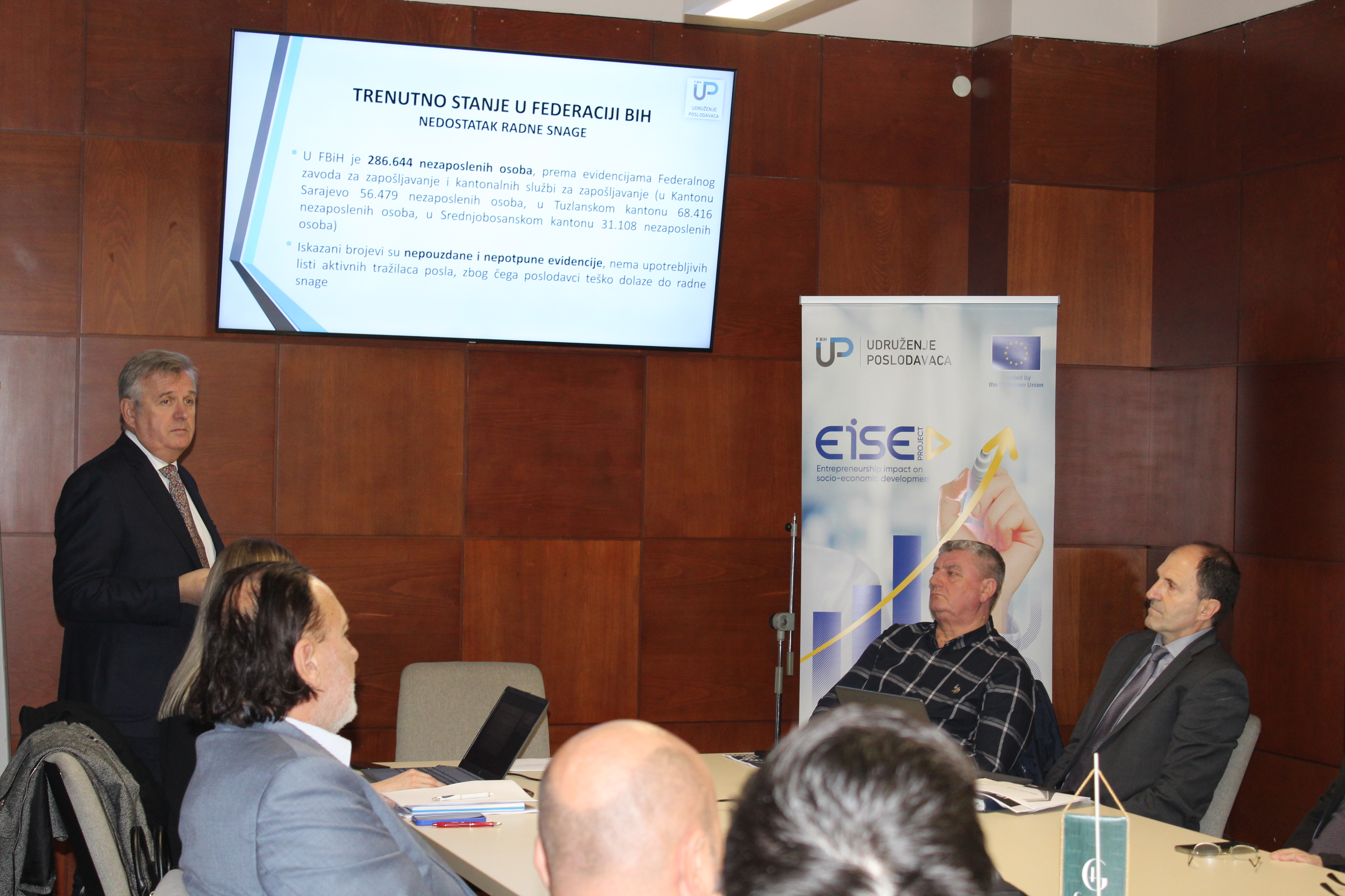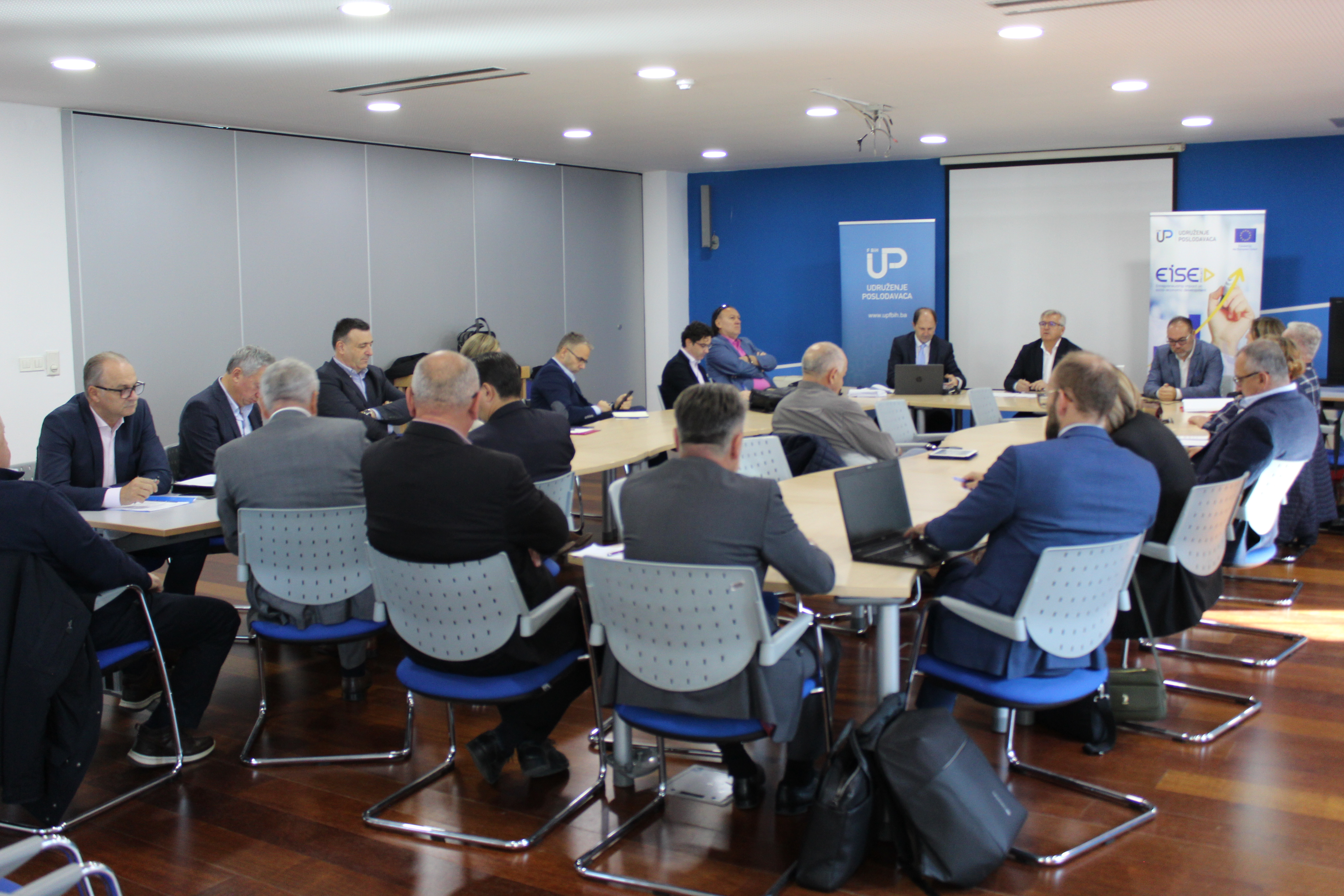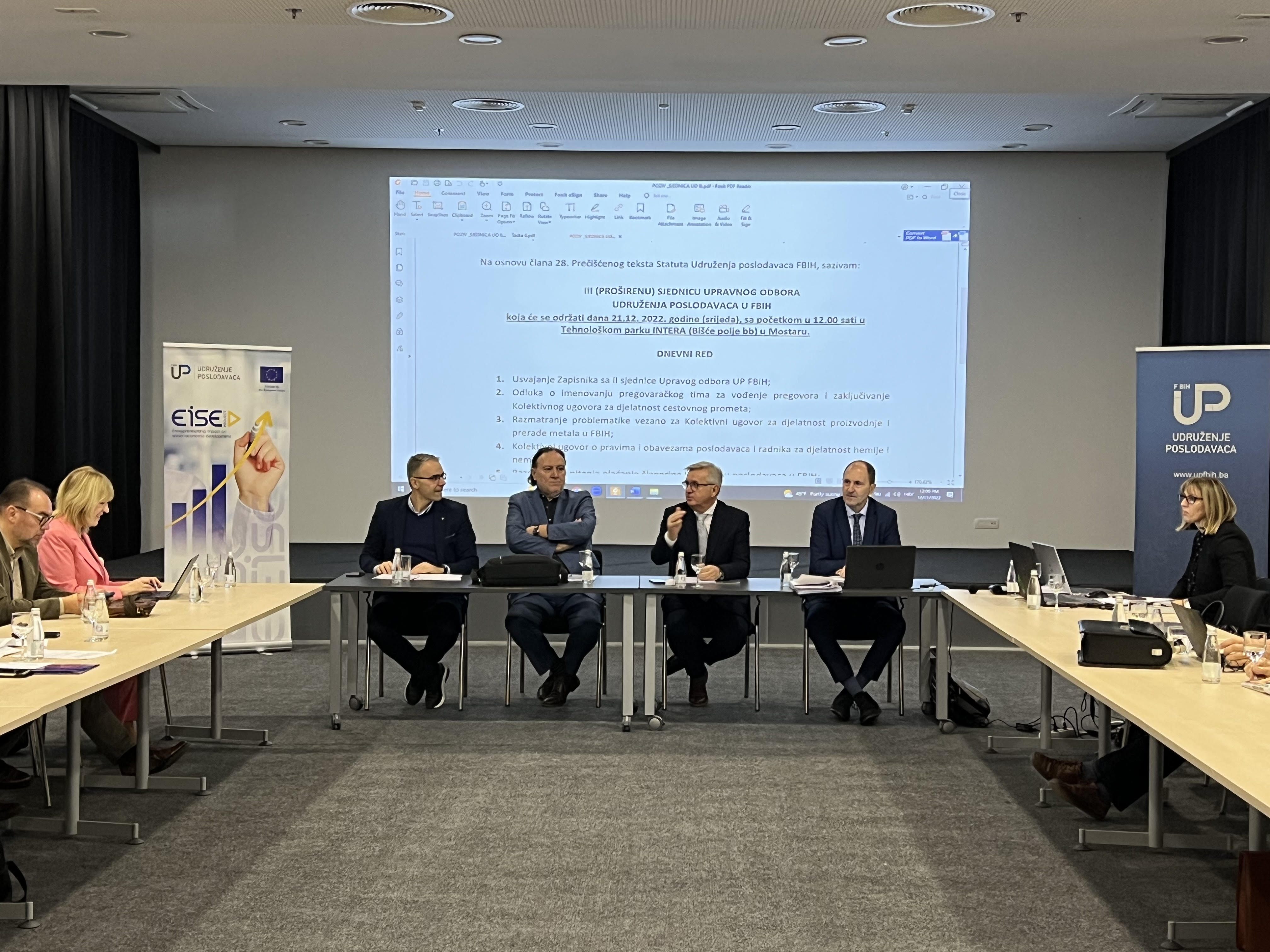 Udruženje poslodavaca FBiH održalo je tematsku sjednicu Upravnog odbora u vezi predstavljanja i provedbe Projekta „Doprinos organizacija civilnog društva poboljšanju uticaja preduzetništva na socio-ekonomski razvoj BiH – EISE projekat", koje provodi Unija udruženja poslodavac RS, a koju finansira Europska unija.